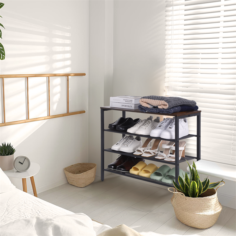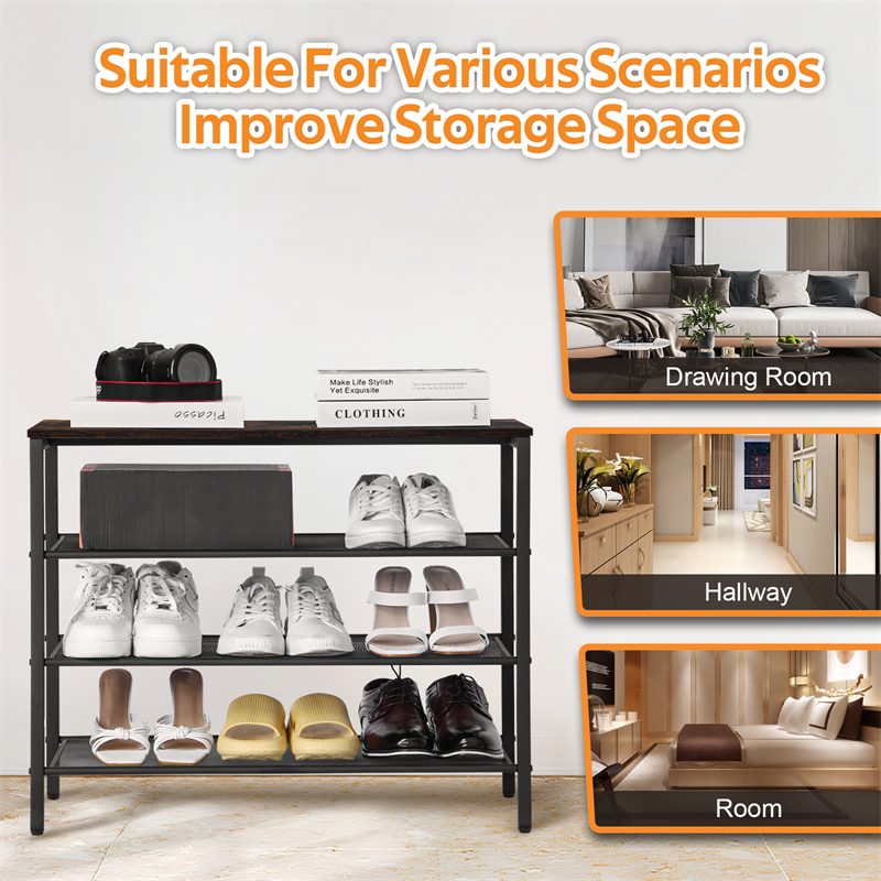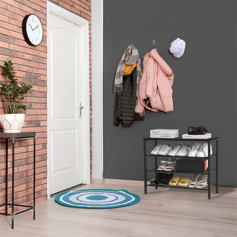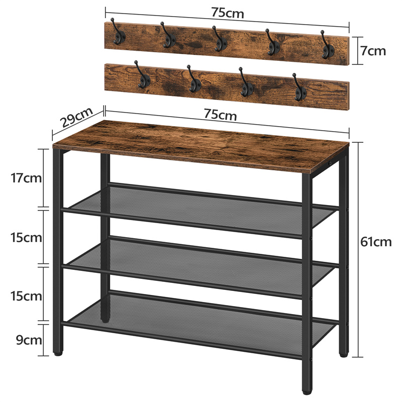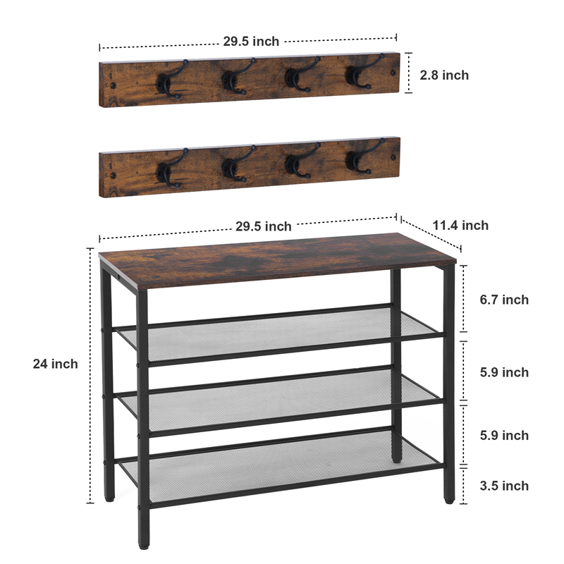 3-tier Shoe Rack With Grid Rack Wooden Rustic Foyer Shoe Rack With Coat Hook, Suitable For The Steel Frame Of The Living Room Mud Room At The Front Door Of The Corridor