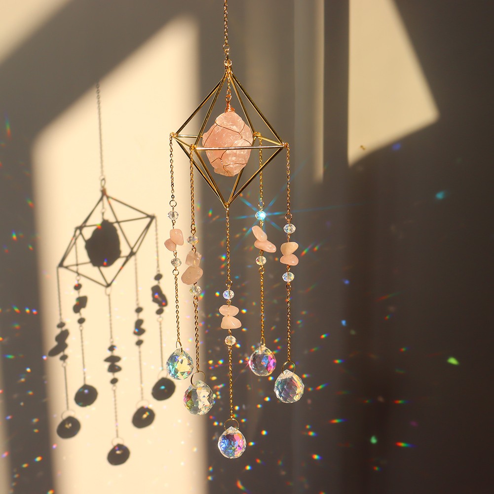 Natural Stone Metal Crystal Ball Wind Chime Pendant